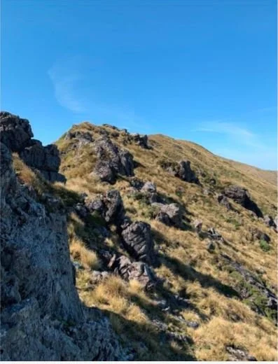 I took a quick stop at Arete Biv, signing the intentions book and refilling all my water vessels. I had a rough goals of 6 hrs to Arete Biv, 12 hr to Powell Hut and then 18 to the finish and was stoked to be at Arete in 5:25hrs. Pulling my pack back on, with the added 2kg of water, it felt heavy, and so with that I carried on to Waiohine Pinnacles and Tarn Ridge.