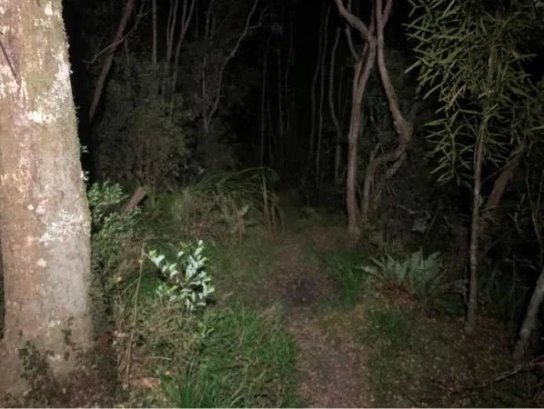 The Tutuwai Hut sign came and went, thankfully that I’d been through here enough times now to beable to follow the track even in dark. The white flowers of the slip, the possum forests and eventually the forested ups and downs before the bridge and then the bridge itself.