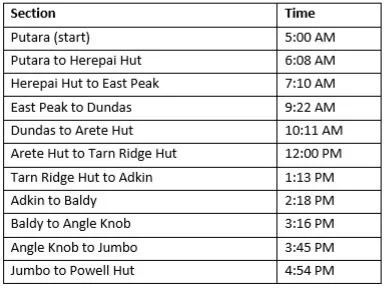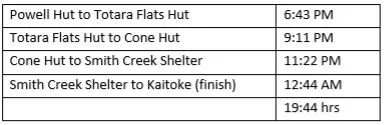 I stopped for a bit to refuel at Powell Hut and to check my splits and was stoked again to be at Powell just ahead of 12 hrs. To counteract that, my legs were tiring, and my pack felt really heavy, so I wasn’t holding out a huge hope for an amazing second half. I sent off a few messages and the important fun factor report to Martini, Kyle and Josh. After the highs of Herepai to Arete (9/10) to the lowly 2/10 through BAP I had recovered to a solid 7/10, just enough wriggle room to take a punch in the face from Cone Saddle if needed and still get it done.