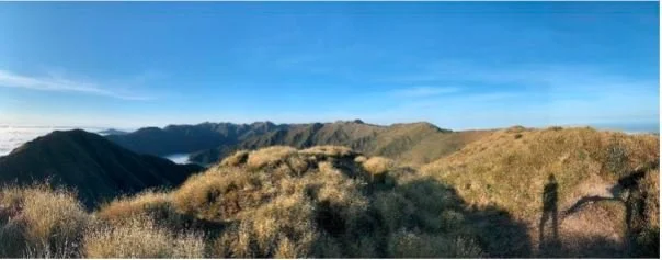 Heading up to Ruapae I hear a Coo-e from Roel to which I respond with a rather loud Whoop, taking a moment to look back and try to spot him. No luck with the sun putting most of where I had been into shadow. Meters further up the track I spot a gas burner and a few cups of tea down on the ground. Then two hunters in camouflage stood up just over the summit of Ruapae and whisper to me they were spotting a stag lower down the ridge. One of them was particularly dark, at my whoops presumably. I offered my apologies and carried on South, half thinking I better get a move on in case they were really dark about it.