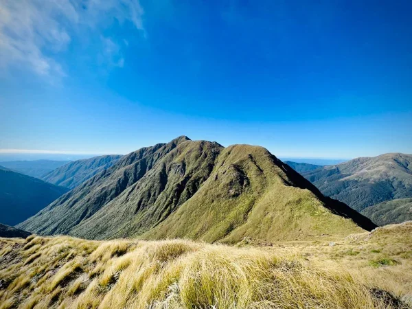 The track doesn’t muck around. In no time we’re climbing out of the bush into the glorious tussocked tops of the Northern Tararua. Orange starts to glow from the east, excitement replaces nervousness for the day ahead. The forecast has held. This time I’ve got the window seat with all the views.