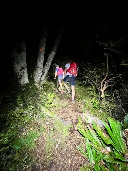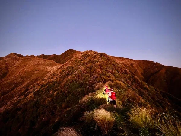 I manage a mix of marching and a shuffley jog. Mindful of not wanting to blow up or bonk. I just need to keep focussed, keep eating and keep putting one foot in front of each other. Tutawai comes and goes. Joe is his normal chipper self, Josh seems a bit quiet at this point. Maybe he is human after all? Maybe he’s just dreaming of another cheese & salami roll. I’m struggling with my headlamp at this point. My second battery apparently wasn't fully charged like I thought.